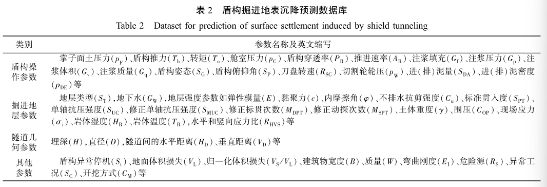 复杂多变的盾构掘进引起的地表沉降是多参数耦合作用下的结果,并不能由某一类别的参数单独决定,且影响地表沉降的各类参数间通常无明显的关联性。 此外,随着盾构法的广泛应用,盾构掘进地表沉