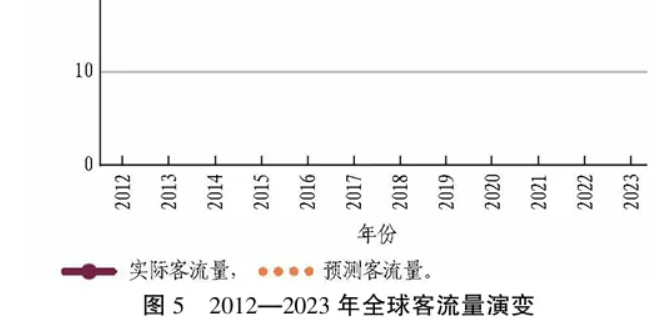 2012—2019年,全球地铁客流量年均增长4.1%。2020年,新冠疫情导致客流量较2019年骤降40%。尽管2021—2022年仍有部分限制,加之适应“新常态”及出行模式改变(居家办公增加、高峰时段变化),客流量恢复缓慢但稳定。整个公共交通行业受疫情影响3年,但2023年客流量首次与2019年持平。因此,2024年客流量很可能超过2019年水平。2019—2023年预测显示,新冠疫情导致客流量“损失”约750亿人次。2023年,亚太地区占全球地铁客流量的58%,其中中国就占全球客流量的29%,与日本(11%)、俄罗斯(5%)、印度(5%)和韩国(4%)构成前5名。图5示出了全球客流量演变情况。