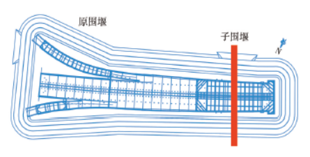 一般内河围堰设计多采用钢套筒围堰,但存在钢套筒围堰拆除难度大、水下作业风险高等问题。东人工岛堰筑段隧道工程地质条件复杂,水位波动大,且受深圳宝安机场起落航线限制,大型围堰施工设备使用受限,因此不适合采用钢套筒围堰设计。钢板桩围堰因其强度高、施工灵活、防水性好等优点而逐渐得到广泛应用,但单排钢板桩水平位移较大,抗弯能力差。相比之下,双排钢板桩具有体积小、影响范围小、止水可靠、能承受较大变形及施工速度快等优点。综合考虑场地工程地质、水文地质和建设要求,结合双排钢板桩自身优势,依据《水利水电工程围堰设计规范》(SL645—2013)、《钢板桩支护技术规程》(T/CECS720—2020),最终确定采用双排钢板桩围堰设计,围堰及子围堰平面布置如图3所示。