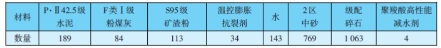 表3 堰筑法明挖现浇隧道混凝土最佳配合比(单位:kg/m3)
