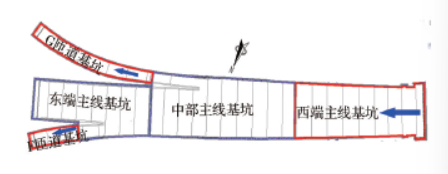 (3)针对深大基坑开挖组织问题,提出“整体分区、分段顺筑”的总体组织原则,单个基坑按照“整体围护、降水辅助、竖向分层、纵向分段、先撑后挖、结构自下而上分段顺筑”的施工方法,有效保障了基坑施工按时按质完成。