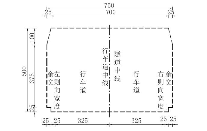 图2 隧道主洞建筑限界(单位:cm)