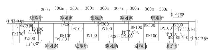 避难所内采用独立的通风系统。通风管道、排气管道分别位于隧道左右两侧电缆沟内。当隧道内发生火灾时,由监控中心发出指令,开启避难所通风系统,输入新鲜空气,排出污染气体。