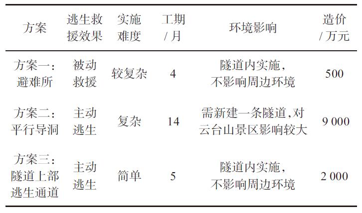 表1 逃生救援方案比选表