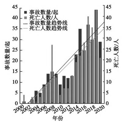新世纪以来,随着经济的飞速发展和城市化进程的加快,我国轨道交通进入了大发展时期。仅用了20多年的时间,我国地铁建设规模就超过了国外城市地铁发展一般经历几十乃至上百年的建设才达到的规模,地铁建设规模处于一种高速扩张的状态。根据中国城市轨道交通协会最近发布的一份统计报告显示,截至2020年底,38个城市运营着200条城市地铁路线,总长6302.79km。尽管经过了大规模的实践,然而我国的地铁建设事故却并没有如同人们的期望走向消减,地铁建设事故总体仍呈现上升态势。这说明我国地铁建设实践中的安全记录并没有得到挖掘和有效利用,因此有必要通过对地铁建设实践数据进行统计和规律分析来提升我国地铁建设安全。