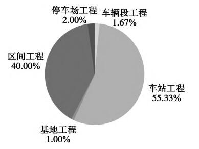 在于海莹等按照施工位置对地铁建设事故进行分析的基础上,按照工程使用性质,将其划分为车站工程、区间工程、车辆段工程、停车场工程和基地工程。在搜集到的数据中,事故工程类型记录明确的有300起,按照工程性质对地铁建设事故进行统计分析,如图7所示。