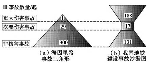 图9 海因里希事故三角形与我国地铁建设事故沙漏图