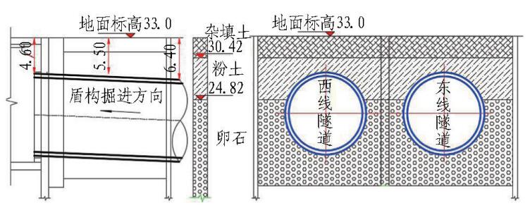 管片外径 11. 3 m,不足 0. 5 倍洞径,属超浅埋隧道。