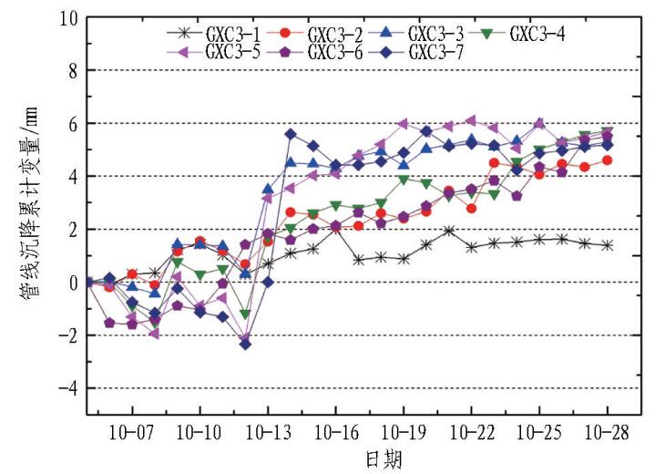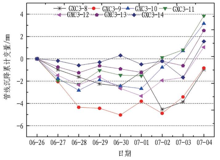 越时,管线的最大沉降量分别控制在 6、4 mm 以内。