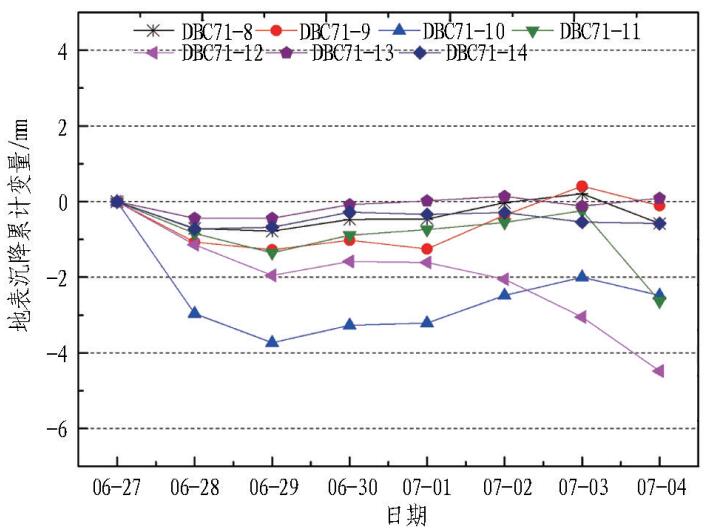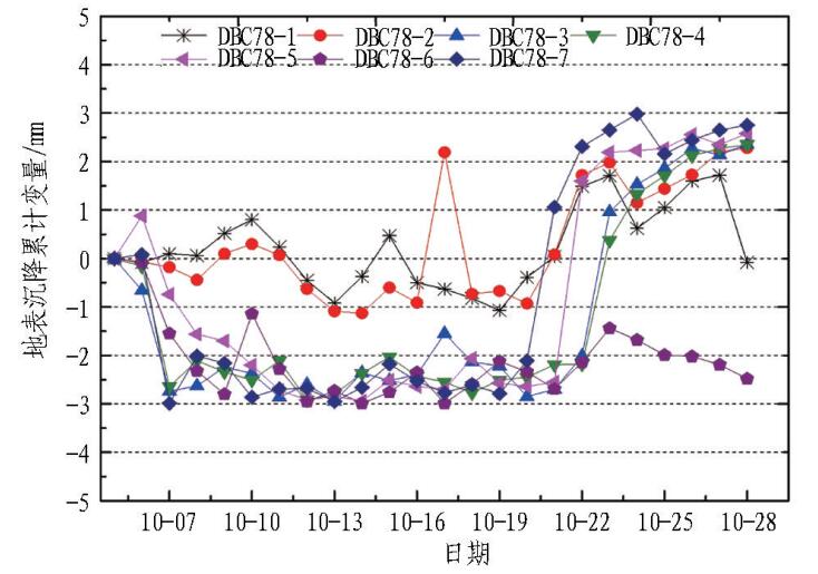 图 6 东线隧道穿越管线期间沉降量(2018 年)