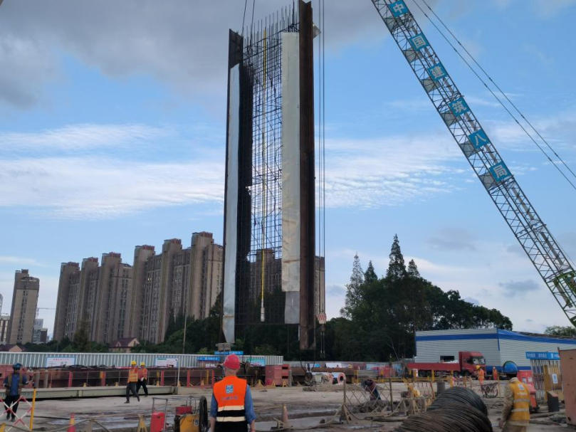 浦东足球场站地墙深54米,且临近运营中的14号线;广兰路站地墙深64米,且临近运营中的2号线;张江站主体采用73米水泥加固土地下连续墙浇筑施工法与60米短地墙的组合围护形式,与机场联络线交叉施工。这些复杂的工况,都对钢筋笼制作的刚度、成槽设备的性能,以及槽壁的稳定性提出了极高的要求。