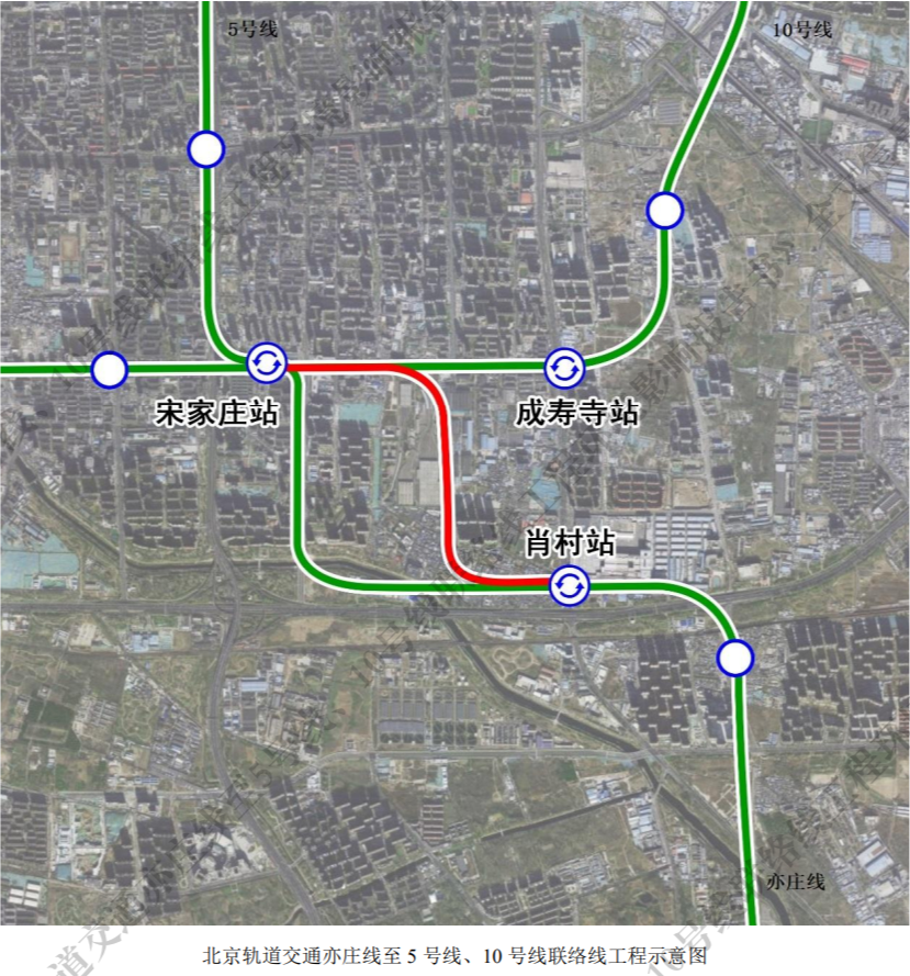 10月22日,北京市基础设施投资有限公司公示了《北京轨道交通亦庄线至5号线、10号线联络线工程环境影响报告书》全文。根据报告书,亦庄线至5号线、10号线联络线工程计划在2025年底开工建设。项目建成后,地铁亦庄线将与5号线直连直通运营,与10号线上行方向同台换乘,预计宋家庄站每日约7.1万人次可不再换乘。
