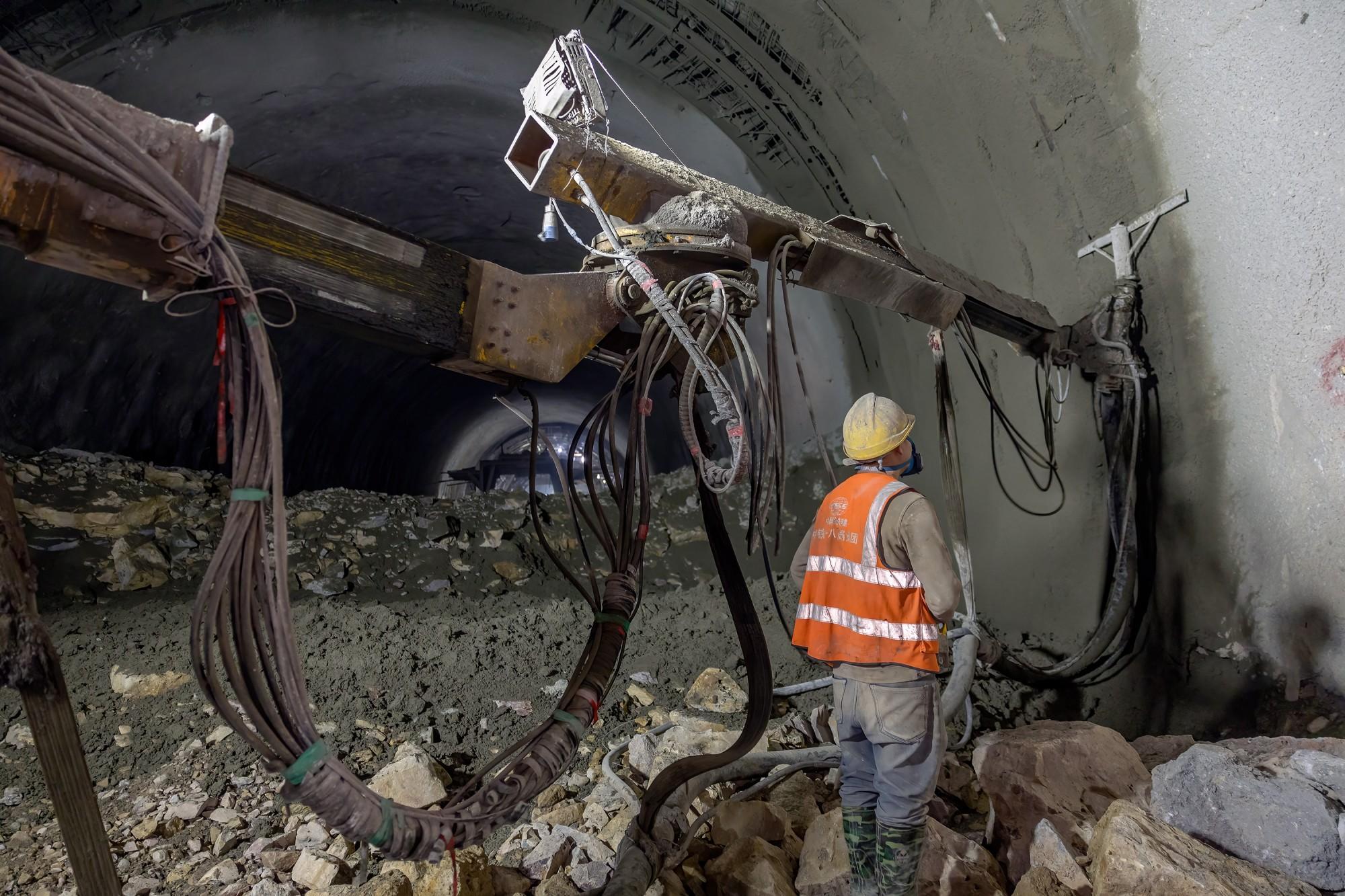 据介绍,施工中建设团队积极优化方案,设置8个通风阶段,有效解决了长距离、多工作面通风的世界性难题。同时利用瞬变电磁、长距离超前钻孔等多种先进技术手段,2次精准预测出岩溶突水突泥风险,顺利通过了1800多米的极高风险段落,平导连续3个月掘进进度超过200米,为全隧按时贯通奠定了坚实基础。