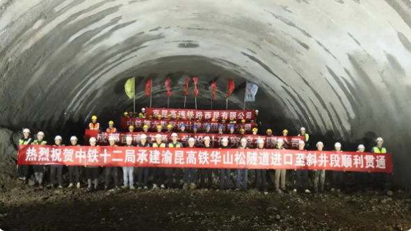 12月12日上午,经过建设者1500多天的艰苦鏖战,渝昆高铁建设取得重大突破,由中铁十二局集团承建的渝昆高铁控制性工程——华山松隧道进口与斜井段6.2公里的关键线路顺利贯通,全隧仅剩100余米,标志着该隧道施工进入最后的冲刺阶段,云南境内53座隧道即将全面贯通。
