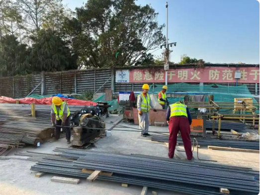 2026年1月4日开工首日,广州会展西路过江隧道施工现场已是一派热火朝天的繁忙景象。钢筋加工区内,工人们娴熟地切割、弯折钢筋,开展主体结构钢筋加工;支撑梁作业面上,大家分工协作,有条不紊地进行钢筋绑扎与模板安装,处处涌动着全力以赴、全速起跑的奋进热潮,为项目建设稳步推进筑牢新年开局根基。
