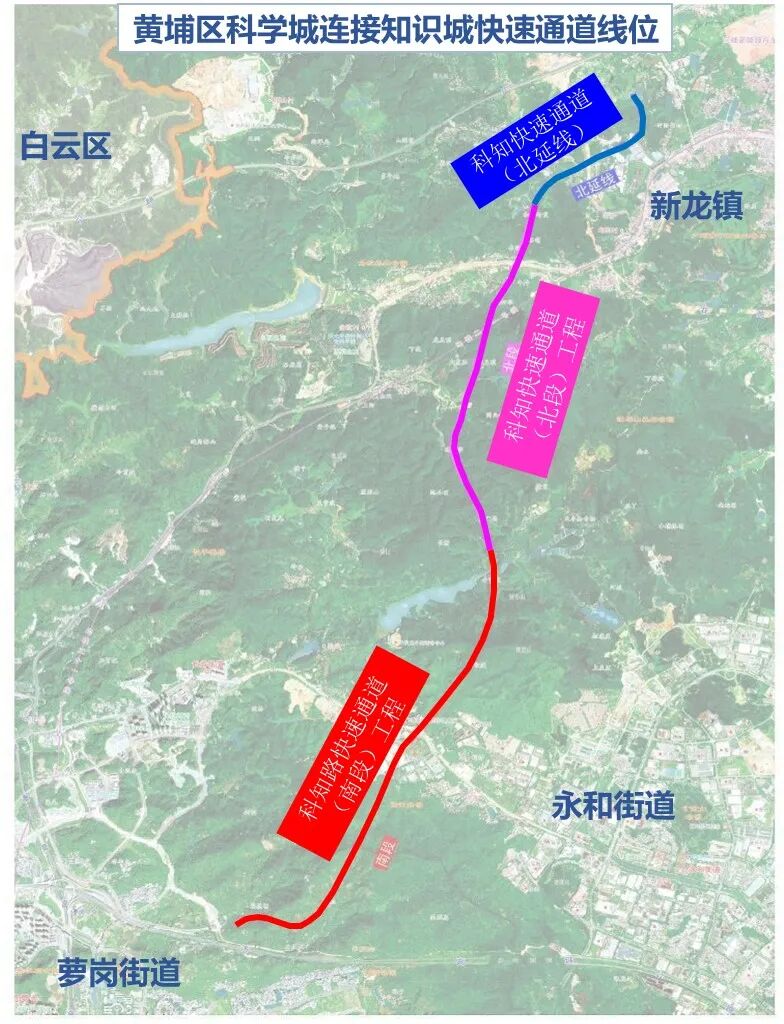 科知通道是黄埔区“十四五”规划重点交通项目三大“交通主动脉”之一,南起外环路与外环A线交叉口,北至水声水库东侧,全长约6.2公里。串联科学城、长岭居及知识城板块,建成后与开放大道、创新大道共同形成强化区域南北向联络的交通动脉,带动沿线经济社会发展。
