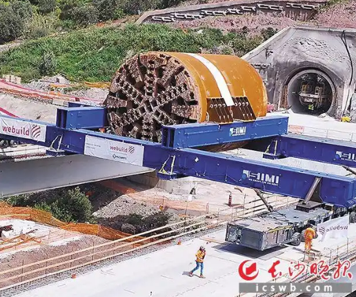 近日,铁建重工一台开挖直径9.36米的土压平衡盾构机,在意大利西西里岛墨西拿-卡塔尼亚铁路项目成功完成主机不拆解整体托举过桥。该工法在全球掘进机行业属于首创,节省了大直径盾构拆机、转运、再组装的人力、物力和工期成本,成为行业降本增效的典型案例。