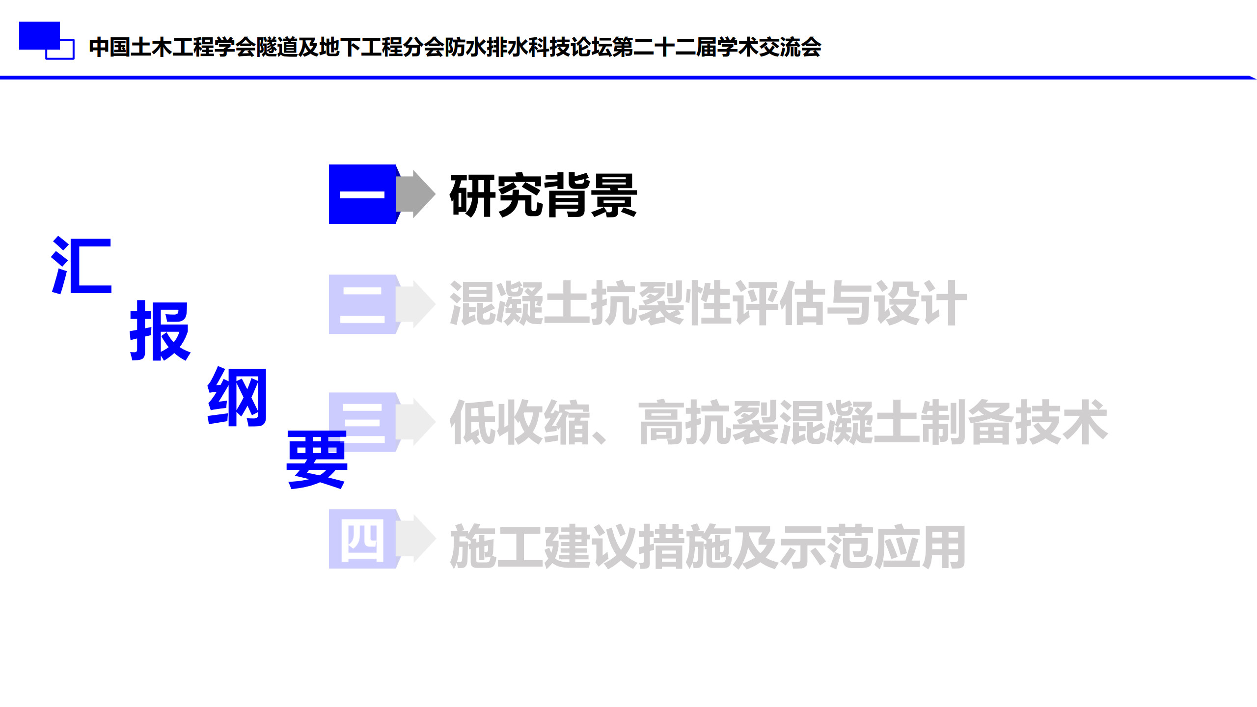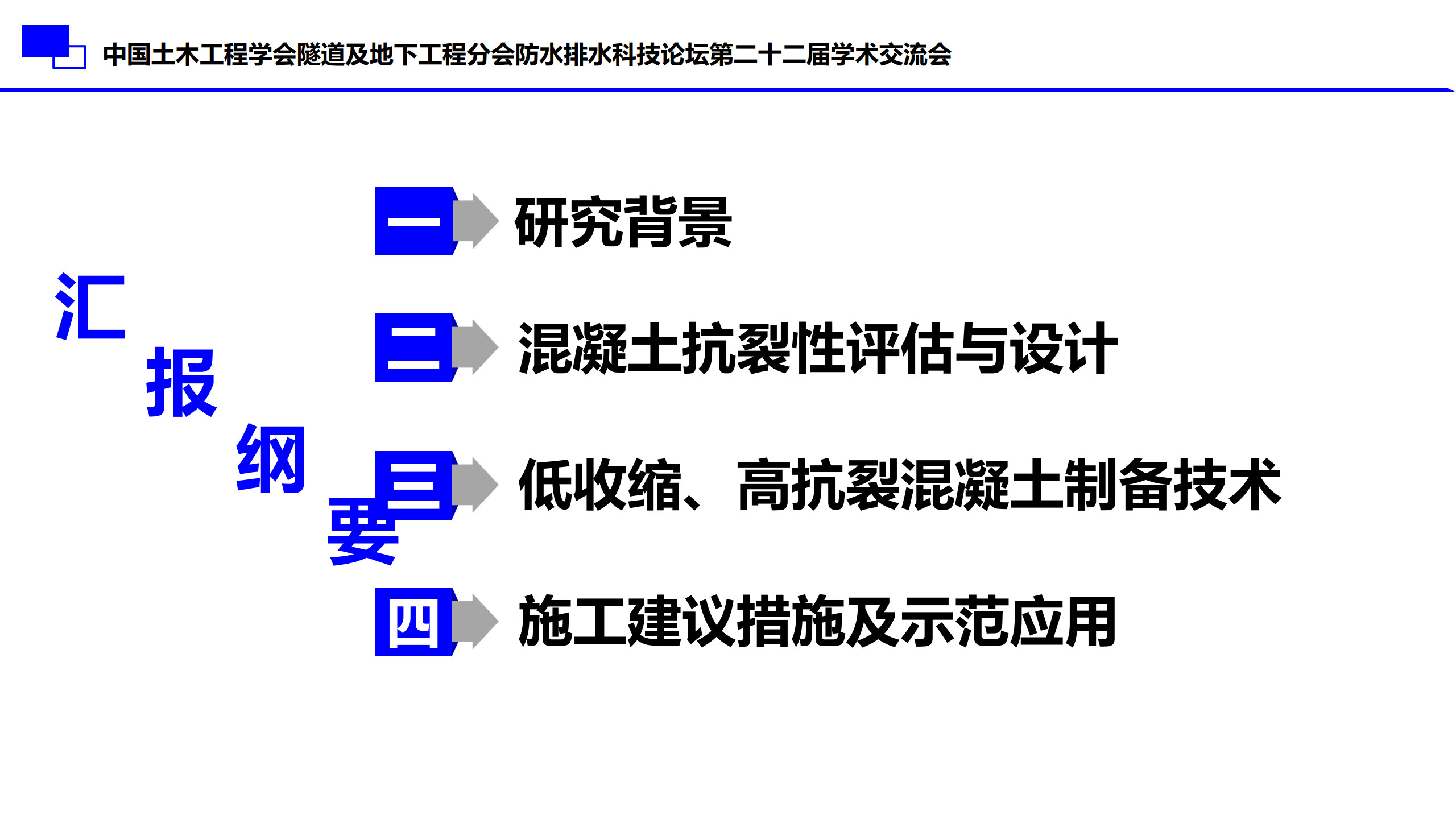 报告介绍了水工大体积混凝土裂缝控制关键技术的研究背景,混凝土抗裂性评估与设计,低收缩、高抗裂混凝土制备技术和施工建议措施及示范应用。