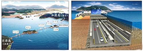 2010年建成的韩国釜山-巨济高速道路工程包括一条3240m的沉管隧道-世界上最长的沉管隧道之一,断面26.46m×9.97m,18节管段,每节长180m,基础采用先铺法碎石。