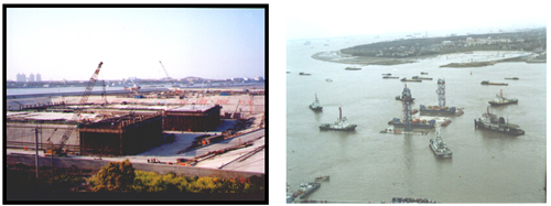 90年代,上海的一些隧道工程技术人员又参与了广州珠江隧道和宁波甬江隧道的施工,承担了管段外防水和地基处理等工程项目。1990年建成的香港东区海底隧道,6车道,沉管隧道长1859m,断面35m×9.8m,15节管段,每节长122m-128m,基础采用砂流法。1993年广州建成道路、地铁共用的珠江沉管隧道,同期建成宁波甬江道路沉管隧道。 2002年1月,宁波常洪隧道建成通车是隧道设计院、隧道公司联合上海打捞局、航道局、三航局等单位,完成的双向四车道道路沉埋隧道工程。常洪隧道江中段沉管法施工,1999年12月开始设计,2002年3月通车,2003年10月荣获中国土木工程第四届詹天佑大奖。国内首条桩基础沉管法隧道。干坞设于隧道轴线上,并在轴线部位设舾装槽,国内尚无类似的设计方案。管段沉放时采用三点临时支承,前端搁置在鼻托上,尾部两个垂直千斤顶的临时支承点采用大直径(φ1200mm)钢管桩,在世界隧道史上尚属首次。国内首次以钢筋混凝土结构自防水为前提,管段底板不设任何外防水。