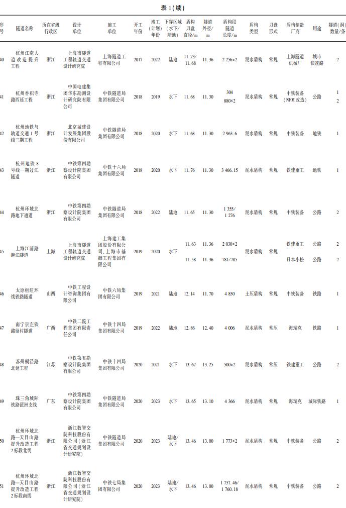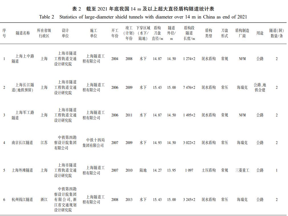 我国大直径盾构隧道数据统计及综合技术现状与展望该项隧道技术成果: