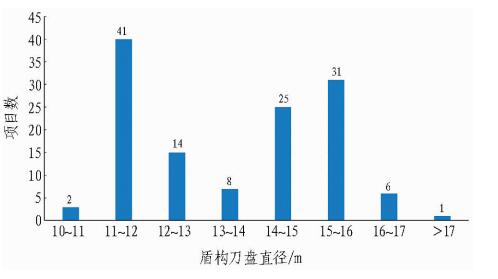 2. 3 按盾构刀盘直径统计