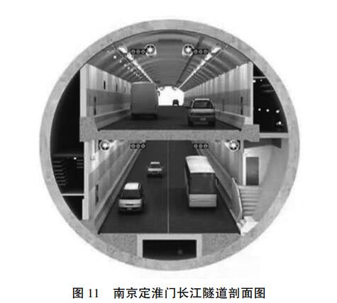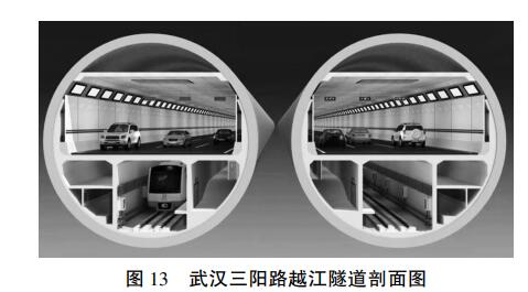 3. 6 城市公路、地铁合建隧道武汉三阳路越江隧道工程,是世界上首条超大直径公铁合建盾构隧道,分上中下 3 层,上层为公路隧道