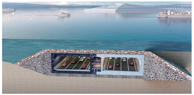 4)海域水下枢纽式匝道隧道与双向 8 车道超长海底沉管隧道组合属世界首例,运营安全与防灾救援面临极大挑战。 机场互通立交为世界首例采用高速公路水下枢纽立交,超大交通量、高货车比、无主线收费站,危化品车管控难,运营安全问题突出;超大断面钢壳混凝土沉管结构防火标准缺乏,特长超宽隧道通风排烟技术不成熟,海底互通式隧道交通流态势研判及智能管控技术薄弱;同时,水下枢纽互通的隧道内存在多次分合流,行车视距受限,安全问题突出。