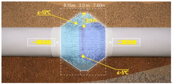 为应对2-3倍常规荷载的冻胀融沉冲击,肖明清提出“刚柔并济”设计思路,发明冻结法地中对接段管片结构纵向刚度过渡体系。在对接段两侧各设置42米过渡段,通过通长钢板拉结管片内表面、加强现浇混凝土纵向钢筋,让过渡段成为“缓冲带”。该体系既能承受施工期上浮、冻胀、融沉荷载,又能适配运营期纵向变形与地震荷载,避免“临时结构浪费”,同时减少对既有管片的损伤,兼顾安全性与经济性。