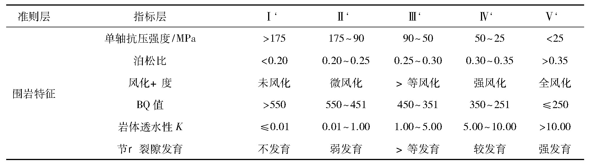 表4 方案层围岩特征判断矩阵
