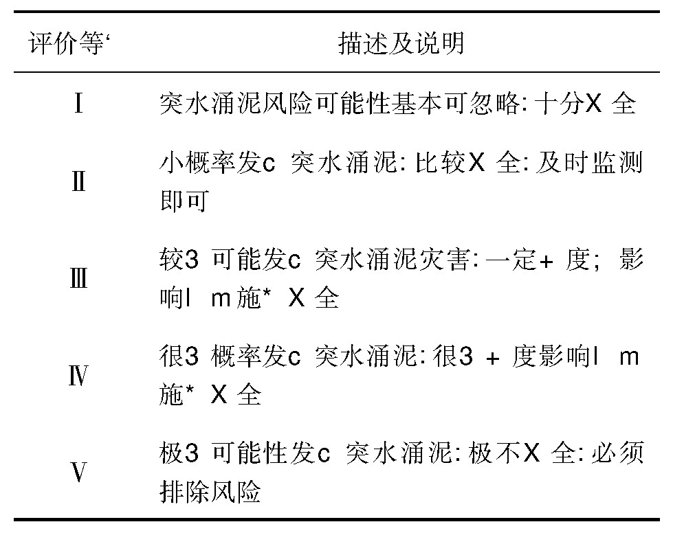 表1 隧道突水涌泥风险分级评价准则