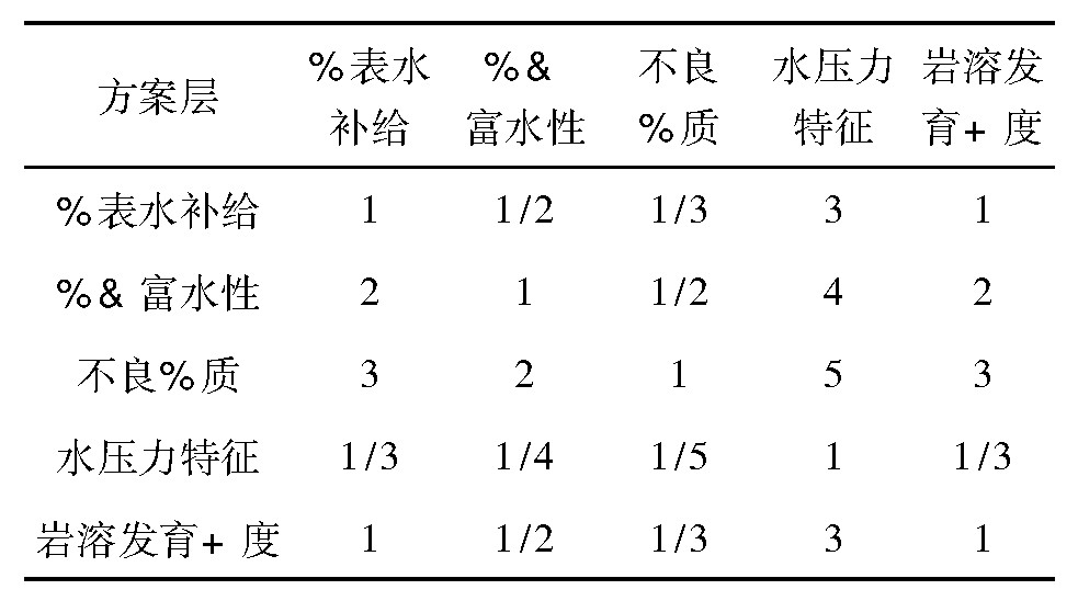 表5 方案层水文地质条件判断矩阵