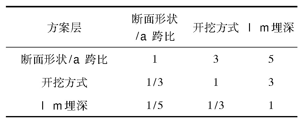 表9 方案层施工设计因素判断矩阵