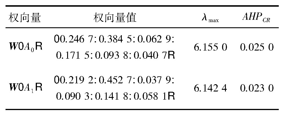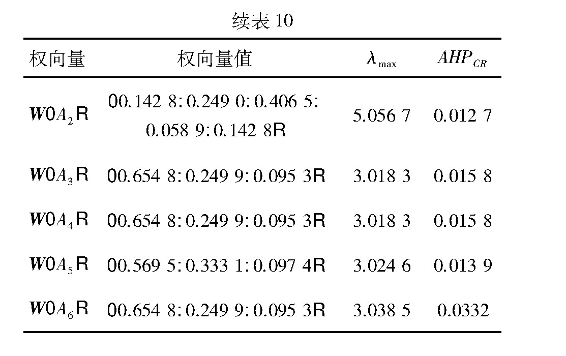 表1 0 各层次影响因素权重向量