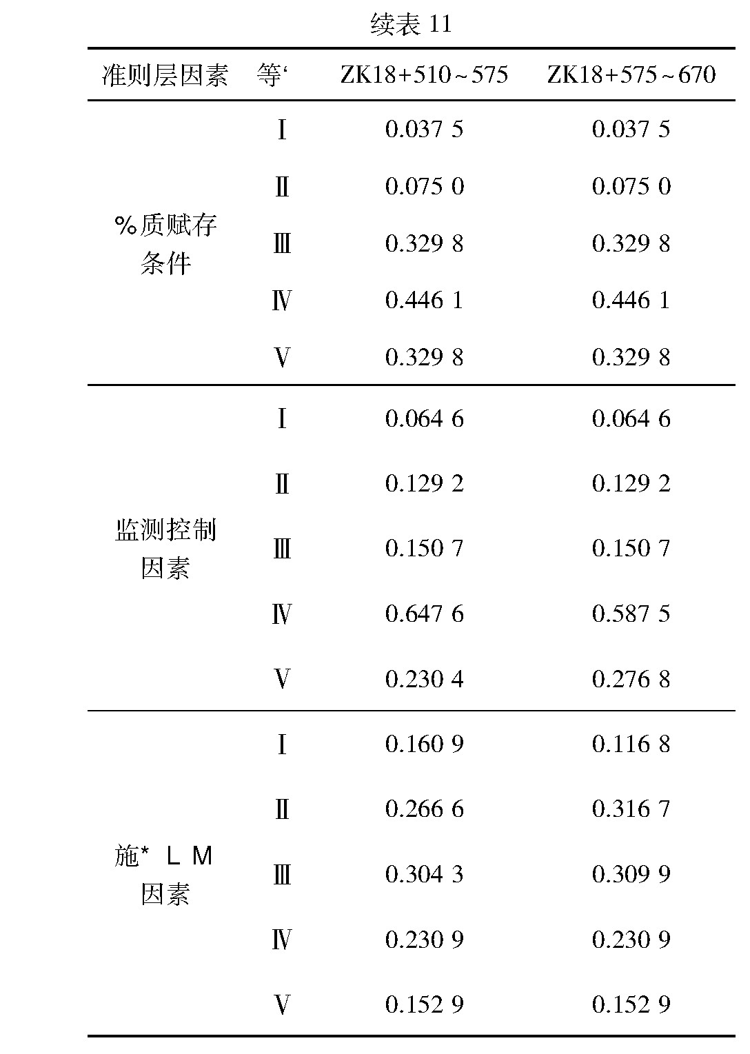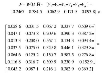 准则层因素隶属度矩阵Vk可由式Vk=Wk·Rk(K=1,2,3,4,5,6)求出,计算结果见表11。