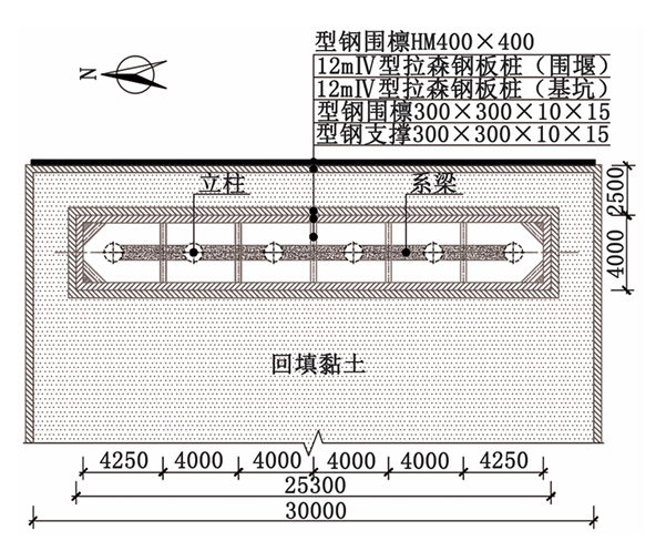 小泐港位于规划浩歌路与玉宇路交叉口西侧,河道宽度45m,河底标高-1m,河道常水位2.5m,无通航要求。小泐港桥Pm02、Pm03桥墩位于小泐港河中,小泐港桥施工前须先施作围堰,再进行桥梁下部结构及上部结构施工。围堰平面图如图3所示。