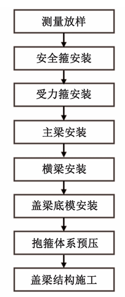 小泐港桥盖梁下部有6根立柱,单榀盖梁施工需要6个安全箍、6个受力箍,抱箍体系安装如图8所示。