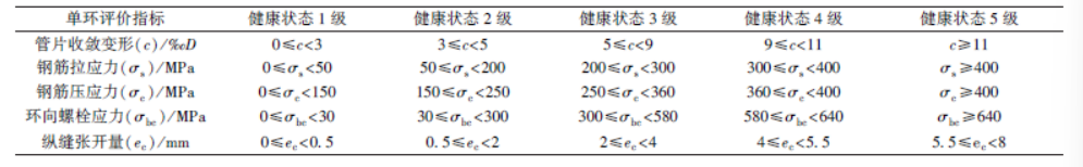 参考当前普遍适用的健康状态评价方法,总结单环结构安全性能评估值计算公式为