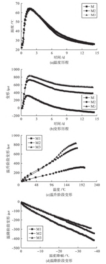 2.3 构件混凝土温度与变形监测结果