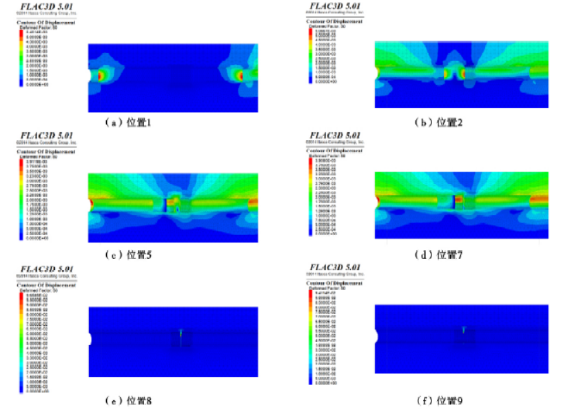 图4 不同掘进位置时掌子面前方土体位移云图