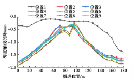 图6 不同掘进位置时隧道轴线上方海底地层沉降曲线