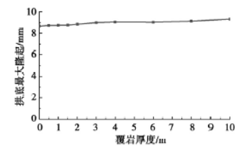图16 拱底最大隆起随覆岩厚度变化曲线
