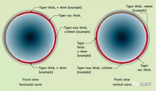 通过安装不同厚度的楔形件自由控制隧道的水平或垂直曲线,均匀或复合曲线;