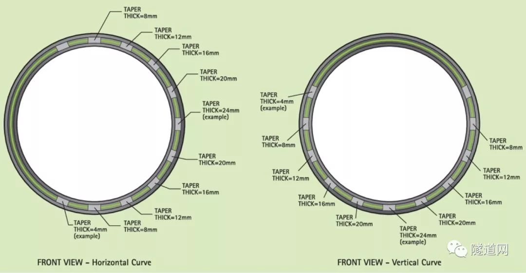 不同厚度楔形件控制隧道曲线变化(水平曲线与垂直曲线)
