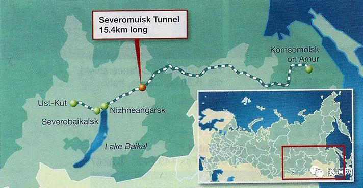 第一条Severomuysky隧道位于西伯利亚贝加尔湖北岸以东300km外的山区,其中长15.4km的管线隧道与铁路隧道平行。