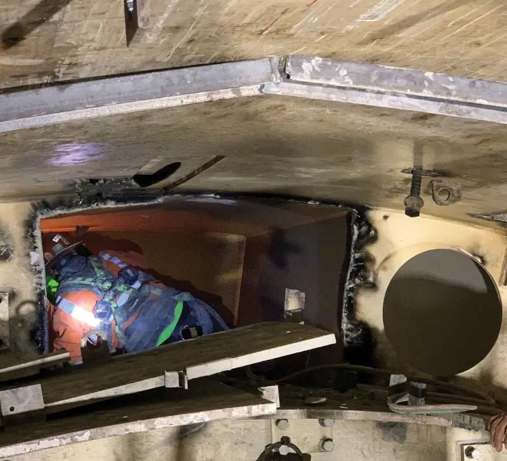 刀盘部件拆卸后,盾壳的拆卸也同步进行,由于隧道内空间有限,只能切割成小块后运出。
