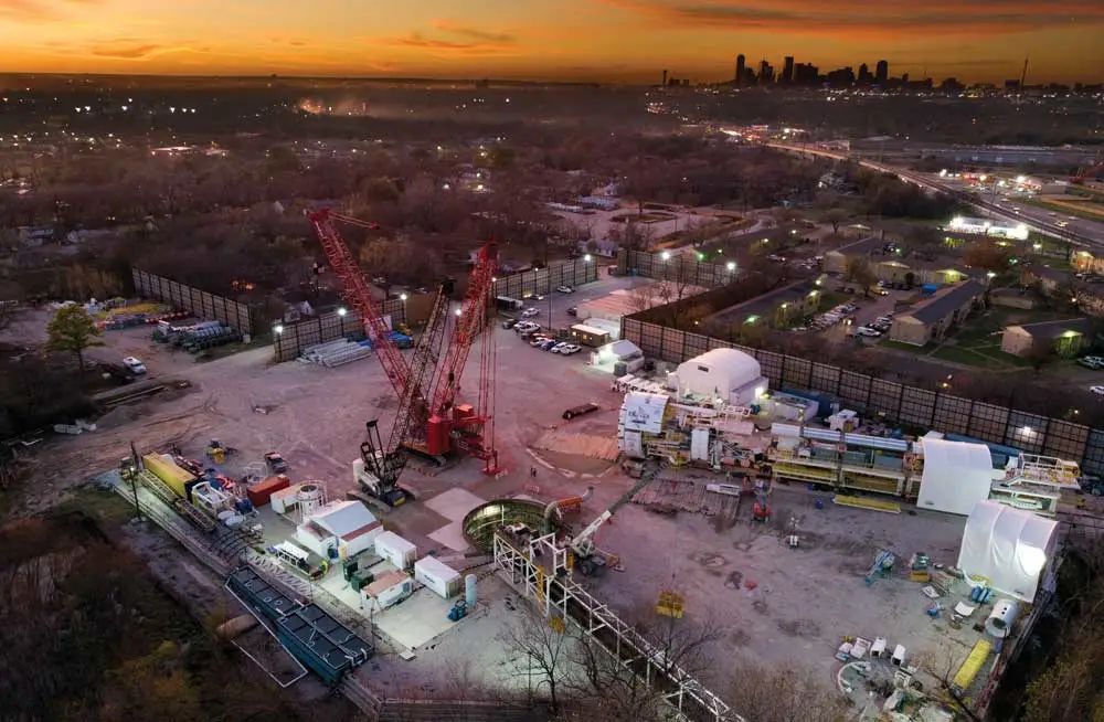 小编语:美国德州Mill Creek排水隧道工程中直径11.6m的罗宾斯“变径”硬岩TBM始发已经一年有余,这台全美施工中最大直径的硬岩TBM需要中途在掘进的隧道内将刀盘直径变换为9.9m,单机完成两种不同直径的隧道掘进。