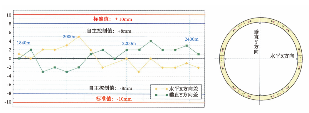 使用六边形管片确保了良好的拼装精度和真圆度以及密封条止水效果。其中真圆度相对管片内径4900mm都收敛于±10mm以内,确认了六边形管片的整环刚度。