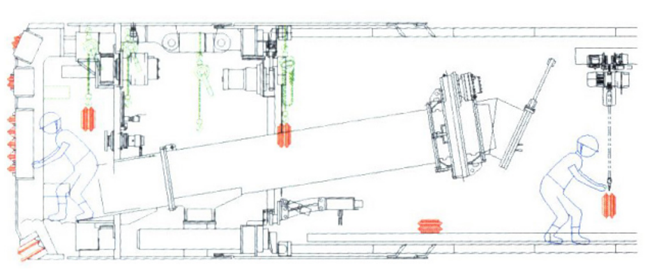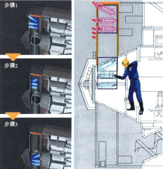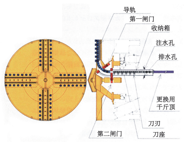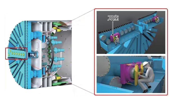 机械式换刀是在辐条或面板上配备了专用装置,无需采用其他辅助工法,且人员无需进入隔舱内即可完成换刀的方式。