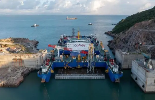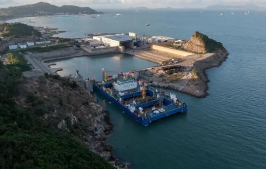 6月8日,深中通道海底隧道合龙前的最后一节沉管和最终接头开始浮运,自珠海牛头岛出坞到隧址沉放安装位置,需航经50公里,跨越珠江口多条航道。